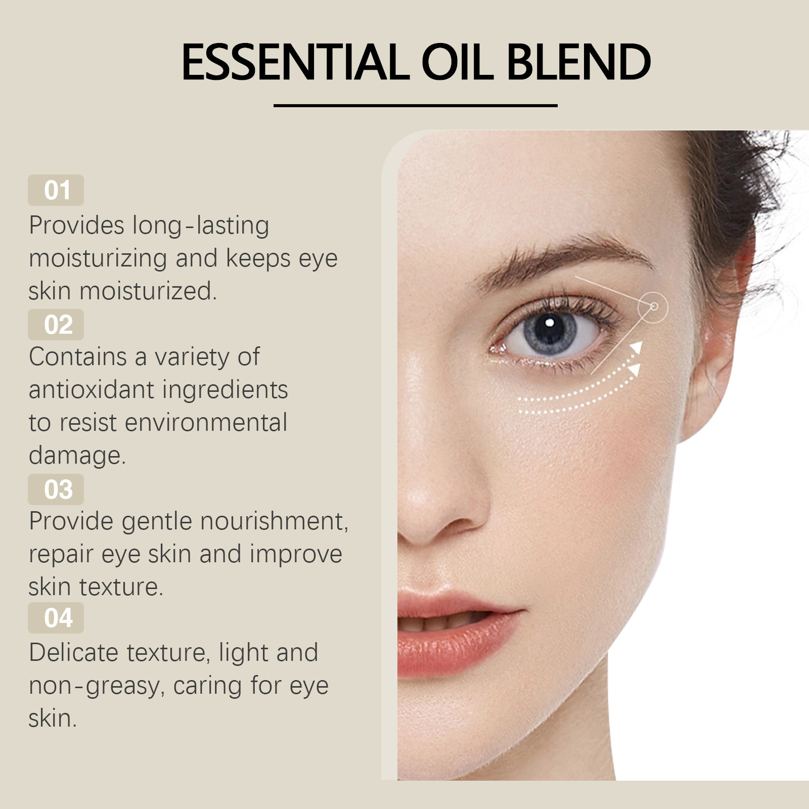 Essential Oil Formula: Infused with nourishing essential oils to hydrate and care for the eye area.